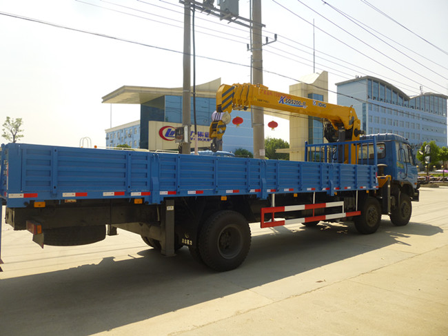 吊機型號,吊機質量(Kg),最大起升載荷(Kg)對應關系為: (SQ10SA2,SQ10SA3)/( 3100,3800)/10000; (SQ12SA2,SQ12SA3)/(3800,4200)/12000。吊機型號,整備質量(Kg),,載質量(Kg)對應關系為:SQ10SA2/12800/11905;(SQ10SA3,SQ12SA2)/13500/11205;SQ12SA3/13900/10805。該車隨底盤選裝新款駕駛室時,對應前懸(mm) :1250, 對應接近角(°) :20,對應后懸(mm) :3350。防護材料:Q235A碳鋼,連接方式:左右側面與箱體底面采用焊接連接,后下部防護與副梁采用焊接連接,后部防護斷面尺寸(mm):130×50,后部防護離地高度(mm):510。該車僅采用的發動機對應油耗值(L/100km)為ISB190 40/37.3,YC6J220-46/37.3,ISB210 40/37.3。安裝帶有衛星定位功能的行駛記錄儀。ABS的型號:4S/4M,生產廠家:威伯科汽車控制系統中國有限公司。