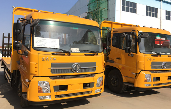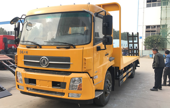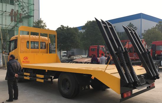 上裝配置:平板底板橫梁采用100*100*5mm方管,底板采用5mm或8mm花紋板,帶加密斜支撐,爬梯采用雙彈簧加強型設計,采用三道筋+雙彈簧加固焊接,可選裝液壓爬梯或折疊加長型液壓爬梯,斜坡處帶后支腿,平板有效板長6.8米(含斜坡),板寬2.5米(可選裝帶左右加寬伸展),可以選擇貨箱帶欄板設計,15噸及15噸以下噸位挖機首選車型!