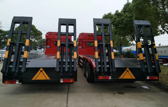 底盤配置:本車采用錫柴350馬力發動機,解放12檔變速箱,5噸雙前橋,13或16噸后雙橋,300mm雙層大梁,1100R20鋼絲胎,電動門窗、自動空調、原廠ABS、行車記錄儀,氣囊座椅。 上裝配置:平板底板橫梁采用120*120*5mm方管,底板采用8mm/10mm/12mm花紋板,帶加密斜支撐,爬梯采用雙彈簧加強型設計,采用三道筋+雙彈簧加固焊接,可選裝液壓爬梯或折疊加長型液壓爬梯,斜坡處帶后支腿,平板有效板長8.9米(含斜坡),板寬2.55米(可手動伸展至3.2米寬),可以選擇貨箱帶欄板設計,35噸及以下噸位挖機首選車型! 該車公告+燃油+環保齊全,全國上戶無憂。